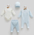 Bebeğinizin dünyaya ilk adımında ihtiyaç duyduğu tüm parçaları bir araya getiren 4’lü hastane  çıkışı seti, yenidoğan hassasiyetine özel olarak tasarlanmıştır.